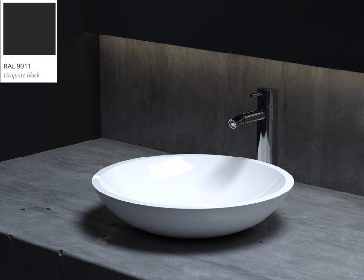 Раковина, Salini, Callista 05, ширина, мм-365, глубина, мм-365, высота, мм-85, тип установки-накладной (настольный), отверстия для смесителя-отсутствуют, без перелива, без донного клапана, материал-искусственный камень, S-Stone, цвет-RAL9011 матовый снаружи/белый матовый внутри Раковина, Salini, Callista 05, шгв 365*365*85, отверстия для смесителя-отсутствуют, цвет-RAL9011 матовый снаружи/белый матовый внутри
