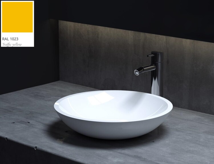 Раковина, Salini, Callista 05, ширина, мм-365, глубина, мм-365, высота, мм-85, тип установки-накладной (настольный), отверстия для смесителя-отсутствуют, без перелива, без донного клапана, материал-искусственный камень, S-Stone, цвет внутри и снаружи-RAL1023 матовый Раковина, Salini, Callista 05, шгв 365*365*85, отверстия для смесителя-отсутствуют, цвет внутри и снаружи-RAL1023 матовый