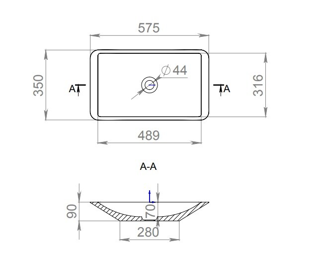 Раковина, Salini, Callista 03, ширина, мм-575, глубина, мм-350, высота, мм-90, тип установки-накладной (настольный), отверстия для смесителя-отсутствуют, без перелива, без донного клапана, материал-искусственный камень, S-Stone, цвет-белый матовый Раковина, Salini, Callista 03, шгв 575*350*90, отверстия для смесителя-отсутствуют, цвет-белый матовый