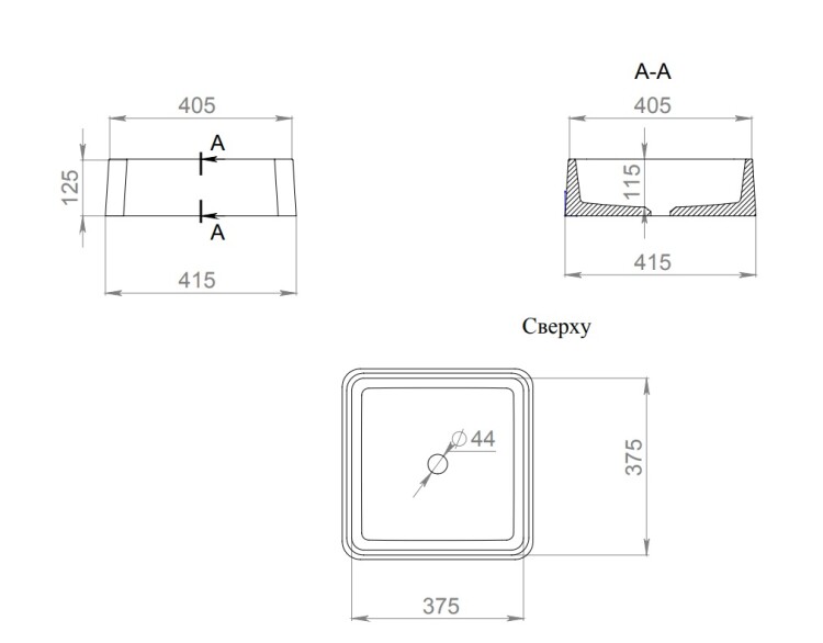 Раковина, Salini, Gloria, ширина, мм-415, глубина, мм-415, высота, мм-125, тип установки-накладной (настольный), отверстия для смесителя-отсутствуют, без перелива, без донного клапана, материал-искусственный камень, S-Stone, цвет-белый матовый Раковина, Salini, Gloria, шгв 415*415*125, отверстия для смесителя-отсутствуют, цвет-белый матовый