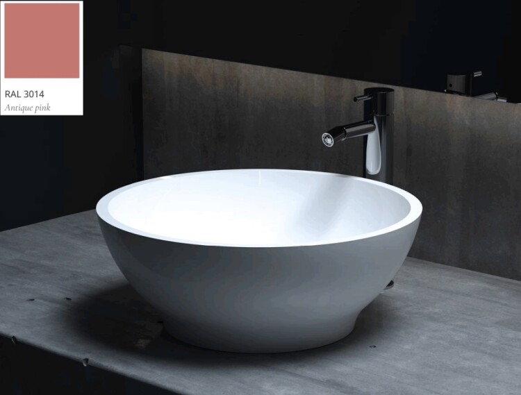 Раковина, Salini, Gloria, ширина, мм-415, глубина, мм-415, высота, мм-125, тип установки-накладной (настольный), отверстия для смесителя-отсутствуют, без перелива, без донного клапана, материал-искусственный камень, S-Stone, цвет-RAL3014 матовый снаружи/белый матовый внутри Раковина, Salini, Gloria, шгв 415*415*125, отверстия для смесителя-отсутствуют, цвет-RAL3014 матовый снаружи/белый матовый внутри