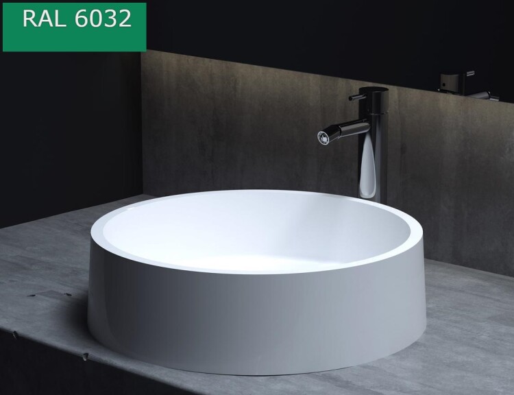 Раковина, Salini, Gloria, ширина, мм-440, глубина, мм-440, высота, мм-125, тип установки-накладной (настольный), отверстия для смесителя-отсутствуют, без перелива, без донного клапана, материал-искусственный камень, S-Stone, цвет внутри и снаружи-RAL6032 матовый Раковина, Salini, Gloria, шгв 440*440*125, отверстия для смесителя-отсутствуют, цвет внутри и снаружи-RAL6032 матовый