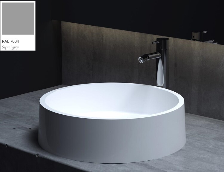 Раковина, Salini, Gloria, ширина, мм-440, глубина, мм-440, высота, мм-125, тип установки-накладной (настольный), отверстия для смесителя-отсутствуют, без перелива, без донного клапана, материал-искусственный камень, S-Stone, цвет внутри и снаружи-RAL7004 матовый Раковина, Salini, Gloria, шгв 440*440*125, отверстия для смесителя-отсутствуют, цвет внутри и снаружи-RAL7004 матовый