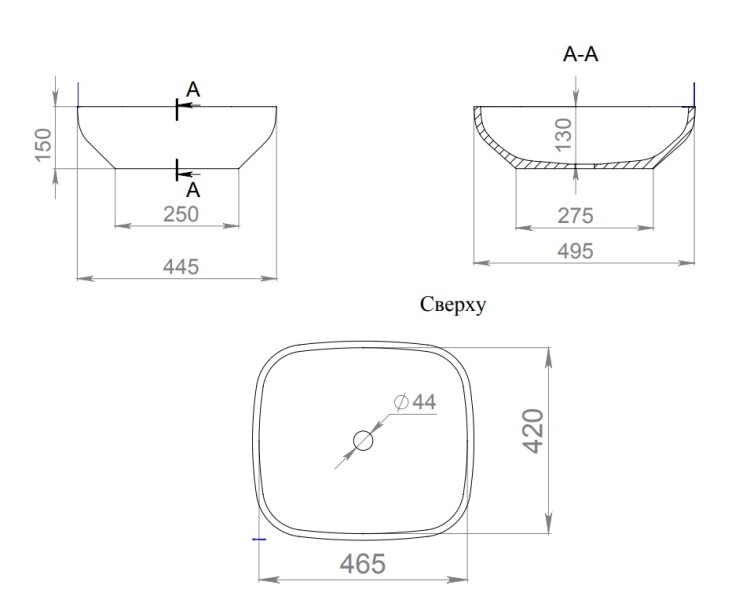 Раковина, Salini, Gloria, ширина, мм-495, глубина, мм-445, высота, мм-150, тип установки-накладной (настольный), отверстия для смесителя-отсутствуют, без перелива, без донного клапана, материал-искусственный камень, S-Stone, цвет-белый матовый Раковина, Salini, Gloria, шгв 495*445*150, отверстия для смесителя-отсутствуют, цвет-белый матовый