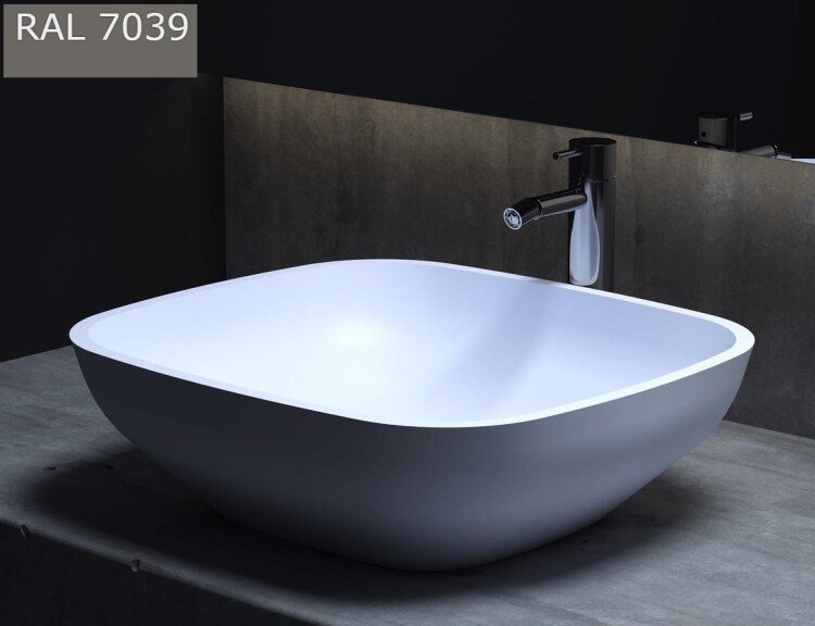 Раковина, Salini, Gloria, ширина, мм-495, глубина, мм-445, высота, мм-150, тип установки-накладной (настольный), отверстия для смесителя-отсутствуют, без перелива, без донного клапана, материал-искусственный камень, S-Stone, цвет внутри и снаружи-RAL7039 матовый Раковина, Salini, Gloria, шгв 495*445*150, отверстия для смесителя-отсутствуют, цвет внутри и снаружи-RAL7039 матовый