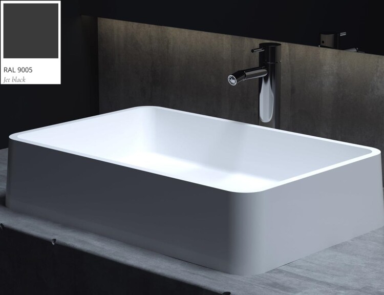 Раковина, Salini, Gloria, ширина, мм-595, глубина, мм-395, высота, мм-165, тип установки-накладной (настольный), отверстия для смесителя-отсутствуют, без перелива, без донного клапана, материал-искусственный камень, S-Stone, цвет-RAL9005 глянцевый снаружи/белый матовый внутри Раковина, Salini, Gloria, шгв 595*395*125, отверстия для смесителя-отсутствуют, цвет-RAL9005 глянцевый снаружи/белый матовый внутри