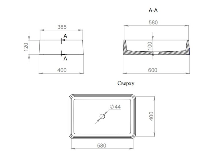 | Отверстия под смеситель | отсутствуют |