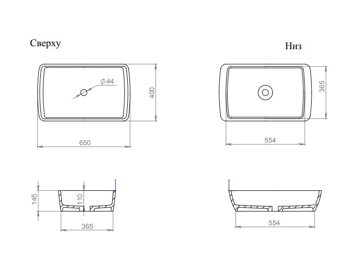 | Отверстия под смеситель | отсутствуют |