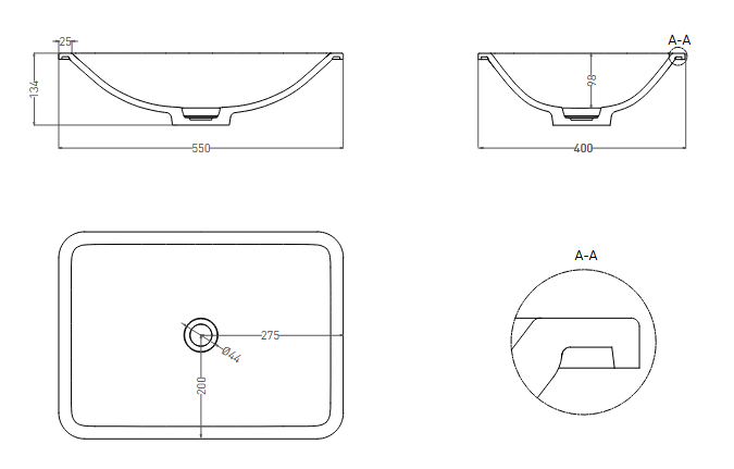 Раковина, Salini, Marea 06, ширина, мм-550, глубина, мм-400, высота, мм-134, тип установки-встраиваемый/подвесной, отверстия для смесителя-отсутствуют, без перелива, донный клапан-отсутствует, материал-S-Sense (литьевой мрамор), цвет-белый Раковина, Salini, Marea 06, шгв 550*400*134, отверстия для смесителя-отсутствуют, цвет-белый