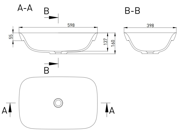 Раковина, Salini, Marea, ширина, мм-598, глубина, мм-398, высота, мм-165, тип установки-полувстраиваемый, отверстия для смесителя-отсутствуют, без перелива, без донного клапана, материал-искусственный камень, S-Stone, цвет-белый матовый Раковина, Salini, Marea, шгв 598*398*165, отверстия для смесителя-отсутствуют, цвет-белый матовый