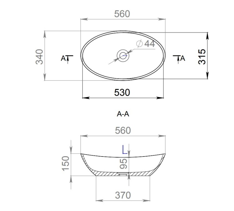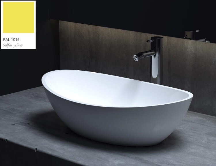 Раковина, Salini, Noemi, ширина, мм-555, глубина, мм-340, высота, мм-150, тип установки-накладной (настольный), отверстия для смесителя-отсутствуют, без перелива, без донного клапана, материал-искусственный камень, S-Stone, цвет внутри и снаружи-RAL1016 матовый Раковина, Salini, Noemi, шгв 555*340*150, отверстия для смесителя-отсутствуют, цвет внутри и снаружи-RAL1016 матовый