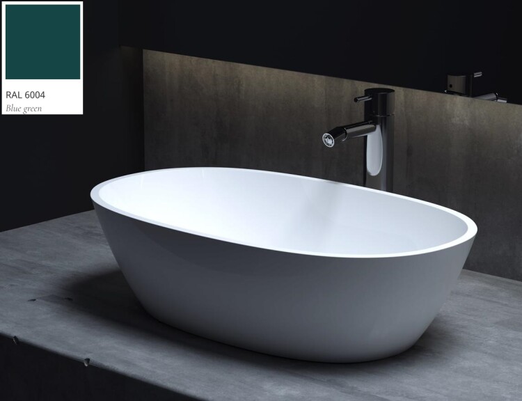 Раковина, Salini, Sofia, ширина, мм-555, глубина, мм-330, высота, мм-150, тип установки-накладной (настольный), отверстия для смесителя-отсутствуют, без перелива, без донного клапана, материал-искусственный камень, S-Stone, цвет внутри и снаружи-RAL6004 матовый Раковина, Salini, Sofia, шгв 555*330*150, отверстия для смесителя-отсутствуют, цвет внутри и снаружи-RAL6004 матовый