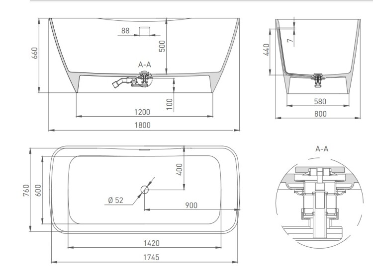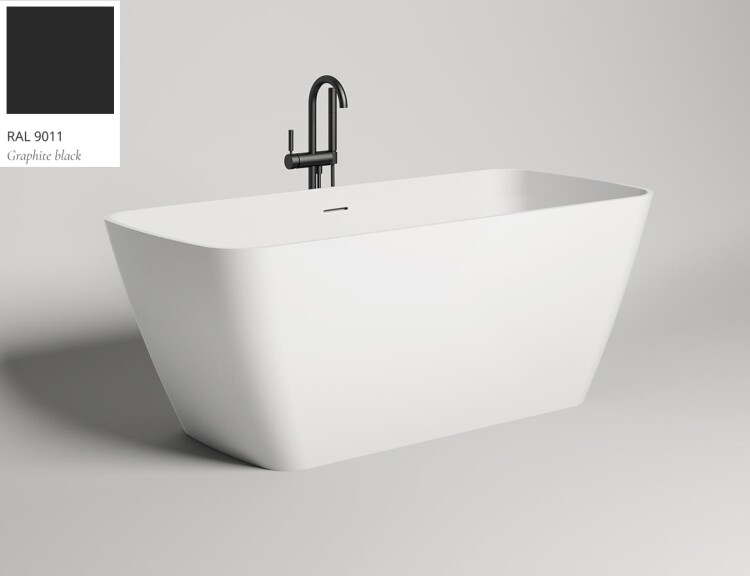 Ванна, Salini, AGATHA, ширина, мм-1800, глубина, мм-800, высота, мм-660, водоизмещение (л)-440, тип установки-отдельностоящая, форма-прямоугольная, сифон, интегрированный слив-перелив-в комплекте, диаметр слива, мм-52, донный клапан "Up&Down", материал-искусственный камень S-Stone, цвет внутри и снаружи-RAL9011 матовый, фурнитура-в цвет изделия Ванна, Salini, AGATHA, шгв 1800*800*660, цвет внутри и снаружи-RAL9011 матовый