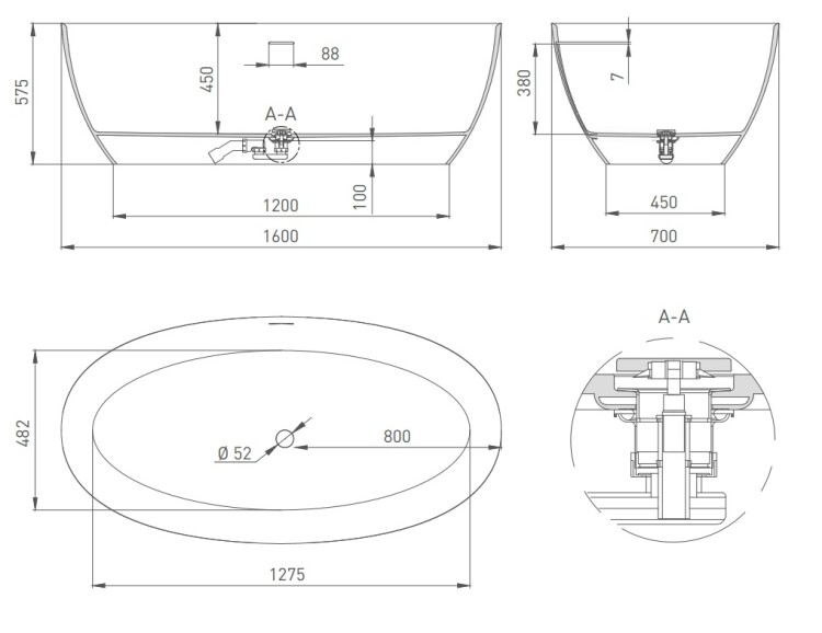 Ванна, Salini, ALDA Nuova, ширина, мм-1600, глубина, мм-700, высота, мм-575, водоизмещение (л)-280, тип установки-отдельностоящий, форма-овальная, сифон, интегрированный слив-перелив-в комплекте, диаметр слива, мм-52, донный клапан "Up&Down"-белый, материал-литьевой мрамор, S-Sense, цвет-белый глянцевый, фурнитура-белая Ванна, Salini, ALDA Nuova, шгв 1600*700*575, цвет-белый глянцевый