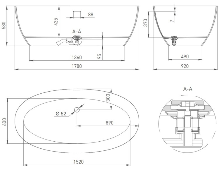 Ванна, Salini, ALDA Nuova, ширина, мм-1780, глубина, мм-920, высота, мм-580, водоизмещение (л)-360, тип установки-отдельностоящий, форма-овальная, сифон, интегрированный слив-перелив-в комплекте, диаметр слива, мм-52, донный клапан "Up&Down"- белый, материал-литьевой мрамор, S-Sense, цвет-белый глянцевый, фурнитура-белая Ванна, Salini, ALDA Nuova, шгв 1780*920*580, цвет-белый глянцевый