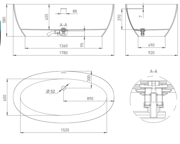 Ванна, Salini, ALDA Nuova, ширина, мм-1780, глубина, мм-920, высота, мм-580, водоизмещение (л)-360, тип установки-отдельностоящий, форма-овальная, сифон, интегрированный слив-перелив-в комплекте, диаметр слива, мм-52, донный клапан "Up&Down"-белый, материал-искусственный камень, S-Stone, цвет снаружи-RAL9005 глянцевый, цвет внутри-белый матовый, фурнитура-белая Ванна, Salini, ALDA Nuova, шгв 1780*920*580, RAL9005 глянцевый снаружи/ДК белый