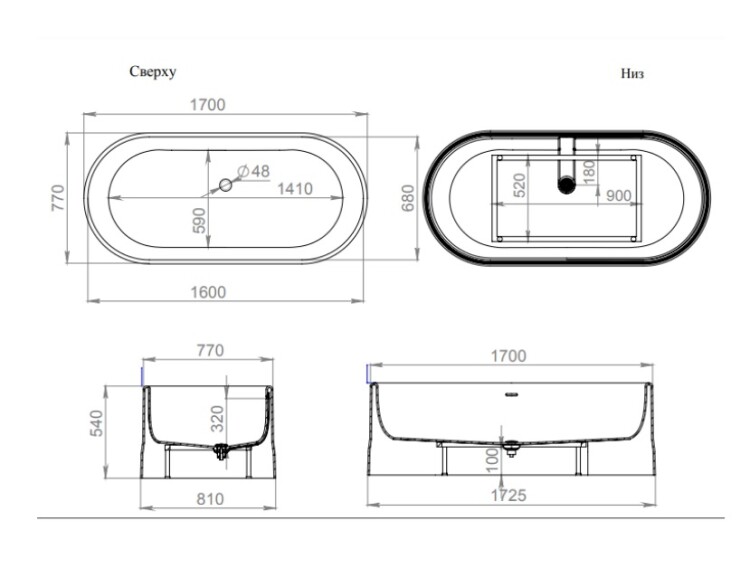 Ванна, Salini, CIRA, ширина, мм-1720, глубина, мм-810, высота, мм-540, водоизмещение (л)-250, тип установки-отдельностоящий, форма-овальная, слив-перелив-в комплекте, донный клапан-хром, материал-литьевой мрамор S-Sense, цвет-белый матовый Ванна, Salini, CIRA, шгв 1720*810*540, донный клапан-хром, цвет-белый матовый