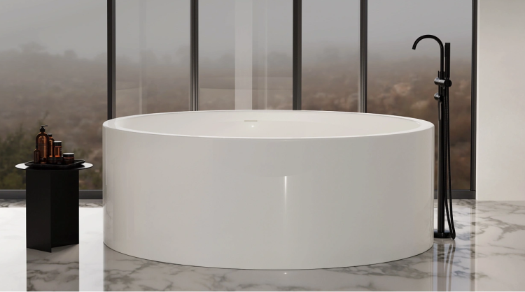 Ванна, Salini, Isola, ширина, мм-2000, глубина, мм-2000, высота, мм-710, водоизмещение (л)-940, тип установки-отдельностоящий, форма-круглая, панель-есть, слив-перелив-в комплекте, диаметр слива, мм-52, сифон, донный клапан Click-clack в цвет изделия, материал-S-Sense (литьевой мрамор), цвет-RAL 1015 Ванна, Salini, Isola, шгв 2000*2000*710, цвет-RAL 1015