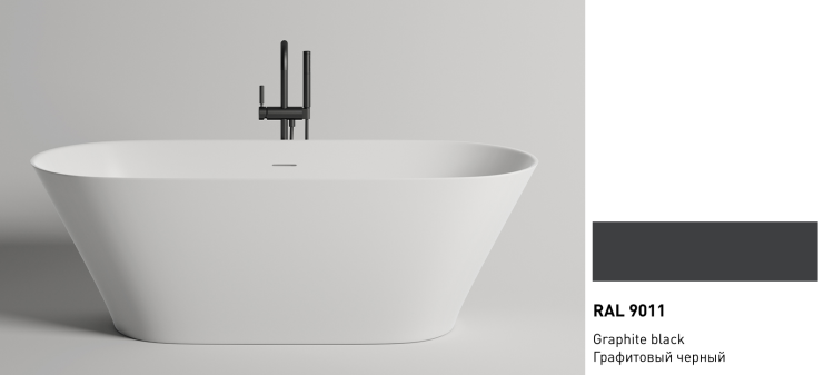 Ванна, Salini, Mona, ширина, мм-1790, глубина, мм-805, высота, мм-595, водоизмещение (л)-345, тип установки-отдельностоящий, форма-овальная, сифон, донный клапан Click-clack D 402-в цвет изделия, интегрированный слив-перелив-в комплекте, диаметр слива, мм-52, материал-S-Stone (искуственный камень), цвет-RAL9011 матовый Ванна, Salini, Mona, шгв 1790*805*595, цвет-RAL9011 матовый