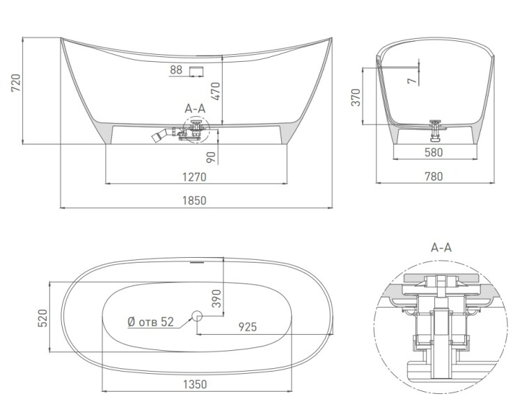 Ванна, Salini, Noemi, ширина, мм-1860, глубина, мм-815, высота, мм-715, водоизмещение (л)-345, тип установки-отдельностоящий, форма-овальная, сифон, интегрированный слив-перелив-в комплекте, диаметр слива, мм-52, донный клапан "Up&Down"- белый, материал-литьевой мрамор, S-Sense, цвет-белый глянцевый, фурнитура-белая Ванна, Salini, Noemi, шгв 1860*815*715, цвет-белый глянцевый
