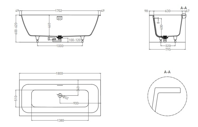 Ванна, Salini, Orlanda Axis Kit, ширина, мм-1800, глубина, мм-795, высота, мм-600/620, водоизмещение (л)-320, тип установки-встраиваемый/пристенный, форма-прямоугольная, в комплекте-регулируемые ножки до 2 см, сифон, интегрированный слив-перелив по центру, диаметр слива, мм-52, донный клапан "Click-Clack"-белый, материал-S-Stone (искуственный камень), цвет-белый матовый Ванна, Salini, Orlanda Axis Kit, шгв 1800*795*600/620, цвет-белый матовый