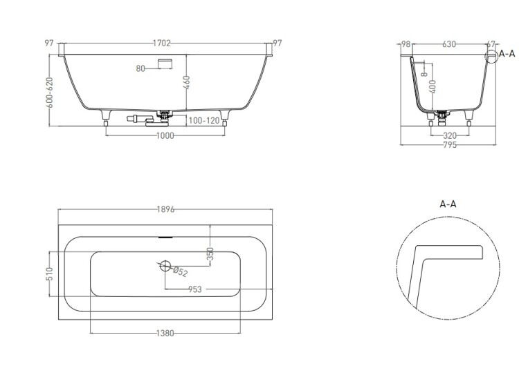 Ванна, Salini, Orlando Axis Kit, ширина, мм-1896, глубина, мм-795, высота, мм-600/620, водоизмещение (л)-320, тип установки-встраиваемый/пристенный, форма-прямоугольная, в комплекте-регулируемые ножки до 2 см, сифон, интегрированный слив-перелив, диаметр слива, мм-52, донный клапан "Click-Clack"-белый, материал-S-Stone (искуственный камень), цвет-белый матовый Ванна, Salini, Orlando Axis Kit, шгв 1896*795*600/620, цвет-белый матовый