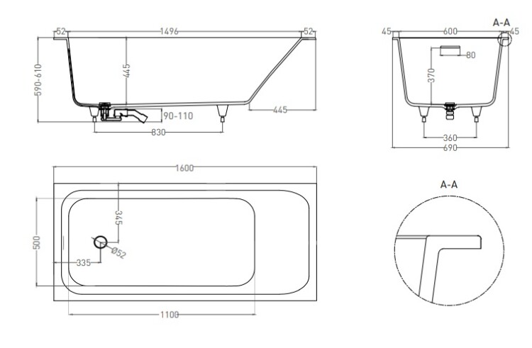 Ванна, Salini, Orlanda Kit, ширина, мм-1600, глубина, мм-690, высота, мм-590/610, водоизмещение (л)-237, тип установки-встраиваемый/пристенный, форма-прямоугольная, в комплекте-регулируемые ножки до 2см, сифон, интегрированный слив-перелив, диаметр слива, мм-52, донный клапан "Click-Clack" белый, материал-S-Stone (искуственный камень), цвет-белый матовый Ванна, Salini, Orlanda Kit, шгв 1600*690*590/610, цвет-белый матовый