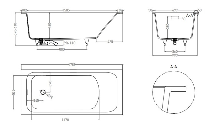 Ванна, Salini, Orlanda Kit, ширина, мм-1789, глубина, мм-797, высота, мм-590/610, водоизмещение (л)-310, тип установки-встраиваемый/пристенный, форма-прямоугольная, в комплекте-регулируемые ножки до 2 см, сифон, интегрированный слив-перелив, диаметр слива, мм-52, донный клапан "Click-Clack"-белый, материал-S-Stone (искуственный камень), цвет-белый матовый Ванна, Salini, Orlanda Kit, шгв 1789*797*590/610, цвет-белый матовый