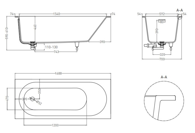 Ванна, Salini, Ornella Kit, ширина, мм-1688, глубина, мм-700, высота, мм-590/610, водоизмещение (л)-240, тип установки-встраиваемый/пристенный, форма-прямоугольная, чаша-овальная, в комплекте-регулируемые ножки до 2 см, сифон, интегрированный слив-перелив, диаметр слива, мм-52, донный клапан "Click-Clack"-белый, материал-S-Stone (искуственный камень), цвет-белый матовый Ванна, Salini, Ornella Kit, шгв 1688*700*590/610, цвет-белый матовый