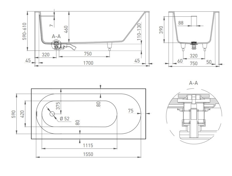 Ванна, Salini, Ornella Kit, ширина, мм-1700, глубина, мм-750, высота, мм-600, водоизмещение (л)-233, тип установки-встраиваемая, форма-прямоугольная, чаша-овальная, регулируемые ножки-в комплекте, сифон, интегрированный слив-перелив-в комплекте, диаметр слива, мм-52, донный клапан "Up&Down"- белый, материал-литьевой мрамор, S-Sense, цвет-белый матовый, фурнитура-белая Ванна, Salini, Ornella Kit, шгв 1700*750*600, цвет-белый матовый