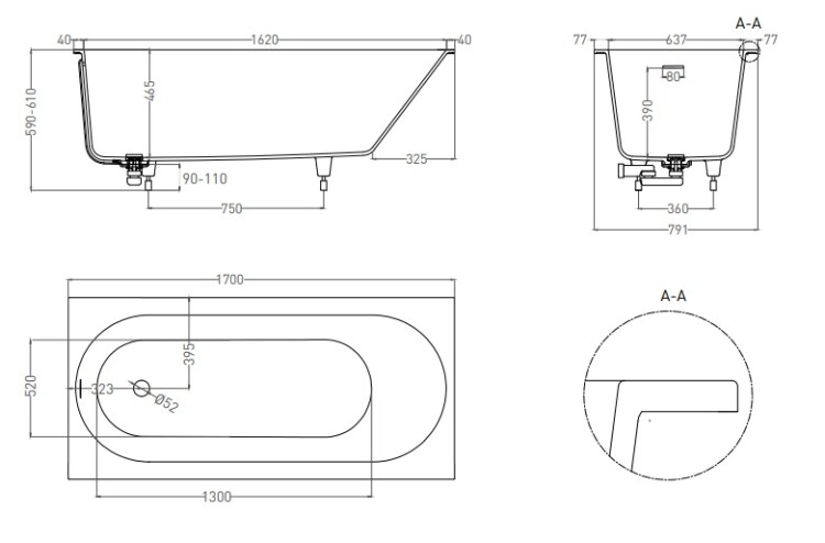 Ванна, Salini, Ornella Kit, ширина, мм-1700, глубина, мм-791, высота, мм-590/610, водоизмещение (л)-240, тип установки-встраиваемый/пристенный, форма-прямоугольная, чаша-овальная, в комплекте-регулируемые ножки до 2 см, сифон, интегрированный слив-перелив, диаметр слива, мм-52, донный клапан "Click-Clack"-белый, материал-S-Stone (искуственный камень), цвет-белый матовый Ванна, Salini, Ornella Kit, шгв 1700*791*590/610, цвет-белый матовый