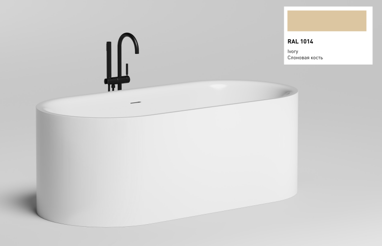 Ванна, Salini, PERLA, ширина, мм-1700, глубина, мм-800, высота, мм-600, водоизмещение (л)-270, тип установки-отдельностоящий, форма-овальная, панель-есть, в комплекте-интегрированный слив-перелив, сифон, накладка на сливное отверстие в цвет изделия, донный клапан Click-Clack, ножки (нерегулируемые), диаметр слива, мм-100, материал-S-Stone (искуственный камень), цвет-RAL 1014 matt Ванна, Salini, PERLA, шгв 1700*800*600, цвет-RAL 1014 matt