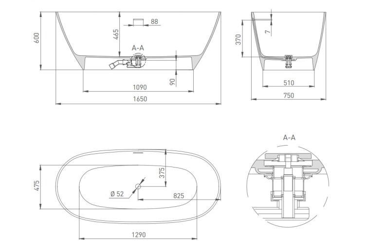 Ванна, Salini, Sofia, ширина, мм-1630, глубина, мм-750, высота, мм-580, водоизмещение (л)-275, тип установки-отдельностоящий, форма-овальная, сифон, интегрированный слив-перелив-в комплекте, диаметр слива, мм-52, донный клапан "Up&Down"-белый, материал-искусственный камень, S-Stone, цвет-белый матовый, фурнитура-белая Ванна, Salini, Sofia, шгв 1630*750*580, цвет-белый матовый