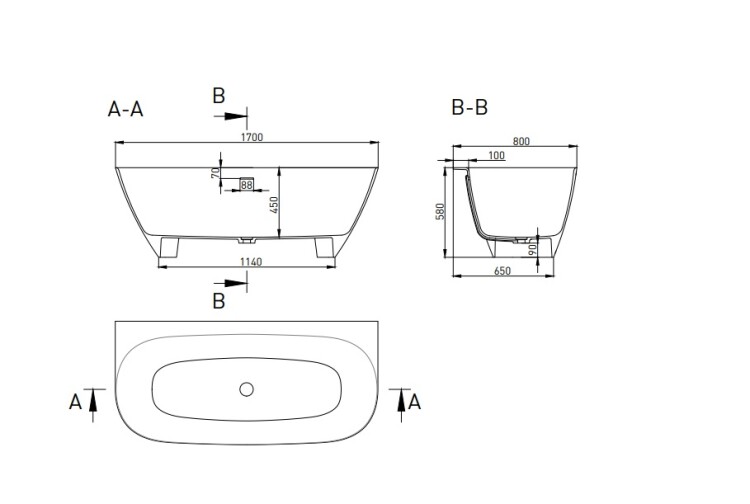 Ванна, Salini, Sofia Wall, ширина, мм-1700, глубина, мм-800, высота, мм-580, водоизмещение (л)-265, тип установки-пристенный, форма-овальная, опорная рама, сифон, интегрированный слив-перелив-в комплекте, диаметр слива, мм-52, донный клапан "Up&Down"-белый, материал-искусственный камень, S-Stone, цвет-белый матовый, фурнитура-белая Ванна, Salini, Sofia Wall, шгв 1700*800*580, цвет-белый матовый/ДК белый