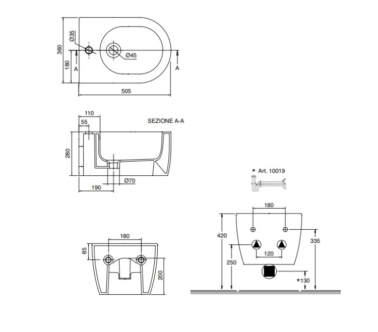Биде, Scarabeo, Moon, тип установки-подвесной, ширина, мм-360, глубина, мм-505, высота, мм-280, форма чаши-овальная, отверстия для смесителя-1, с переливом, материал-керамика, без креплений, цвет-белый Биде, Scarabeo, Moon, подвесной, шгв 360*505*280, цвет-белый