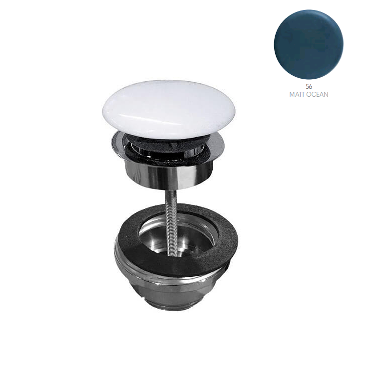Донный клапан, Scarabeo, для раковин, нажимной Click Clack, 1 1/4", форма крышки-круглая, диаметр крышки, мм-72, материал клапана-латунь, цвет клапана-хром, материал крышки-керамика, цвет крышки-Ocean matt Донный клапан, Scarabeo, для раковин, 1 1/4", цвет-хром/Ocean matt