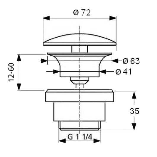 Донный клапан, Scarabeo, для раковин, нажимной Click Clack, 1 1/4", форма крышки-круглая, диаметр крышки, мм-72, материал клапана-латунь, цвет клапана-хром, материал крышки-керамика, цвет крышки-белый Донный клапан, Scarabeo, для раковин, 1 1/4", цвет-хром/белый