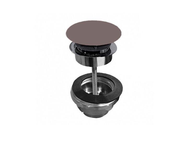 Донный клапан, Scarabeo, для раковин, нажимной Click Clack, 1 1/4", форма крышки-круглая, диаметр крышки, мм-72, материал клапана-латунь, цвет клапана-хром, материал крышки-керамика, цвет крышки-Sand matt Донный клапан, Scarabeo, для раковин, 1 1/4", цвет-хром/Sand matt
