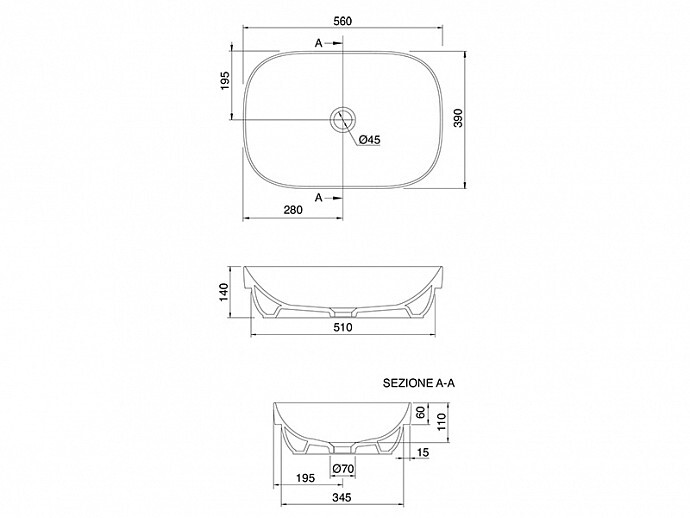 Раковина, Scarabeo, Glam, ширина, мм-560, глубина, мм-390, высота, мм-140, тип установки-встраиваемый, отверстия для смесителя-отсутствуют, без перелива, без донного клапана, материал-керамика, цвет-белый Раковина, Scarabeo, Glam, шгв 560*390*140, отверстия для смесителя-отсутствуют, цвет-белый