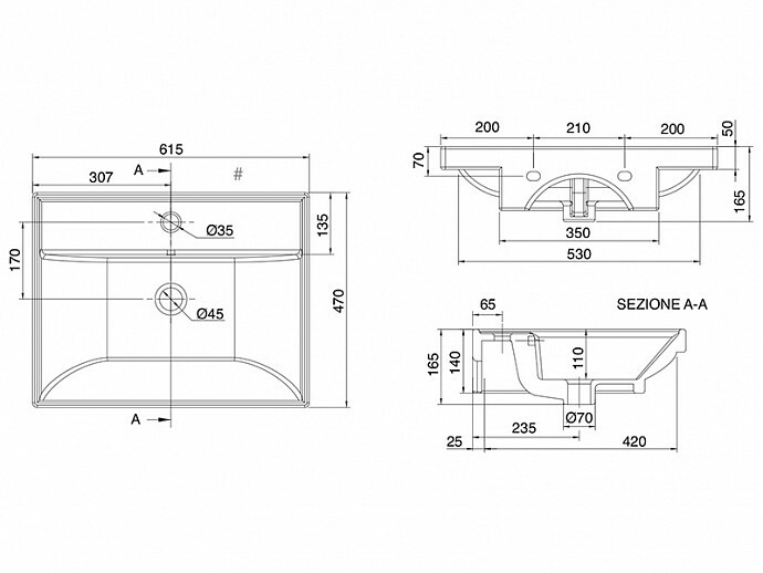 Раковина, Scarabeo, ML, ширина, мм-615, глубина, мм-470, высота, мм-165, тип установки-встраиваемый/подвесной, с переливом, отверстия для смесителя-1, материал-керамика, крепления в комплекте, цвет-белый Раковина, Scarabeo, ML, шгв 615*470*165, отверстия для смесителя-1, цвет-белый
