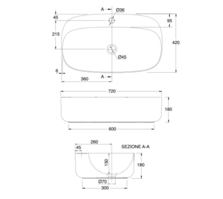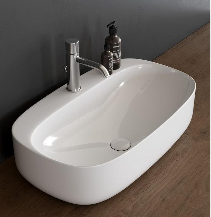 Раковина, Scarabeo, Moon, ширина, мм-720, глубина, мм-420, высота, мм-180, тип установки-накладной (настольный), отверстия для смесителя-1, без перелива, материал-керамика, цвет-Air Раковина, Scarabeo, Moon, шгв 720*420*180, отверстия для смесителя-1, цвет-Air