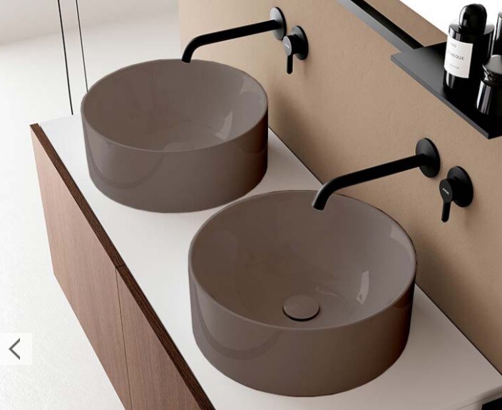 Раковина, Scarabeo, Skinny, ширина, мм-400, глубина, мм-400, высота, мм-150, тип установки-накладной (настольный), отверстия для смесителя-отсутствуют, без перелива, с автоматическим донным клапаном, материал-керамика, цвет-Tobacco glossy Раковина, Scarabeo, Skinny, шгв 400*400*150, отверстия для смесителя-отсутствуют, цвет-Tobacco glossy