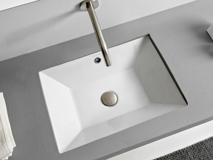 Раковина, Scarabeo, Teorema 2.0, ширина, мм-450, глубина, мм-360, высота, мм-170, тип установки-встраиваемый снизу, отверстия для смесителя-отсутствуют, с переливом, материал-керамика, цвет-белый Раковина, Scarabeo, Teorema 2.0, шгв 450*360*170, отверстия для смесителя-отсутствуют, цвет-белый