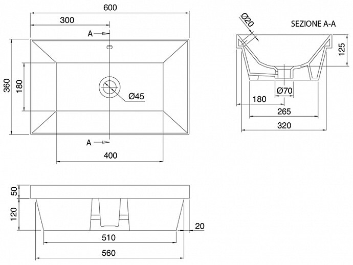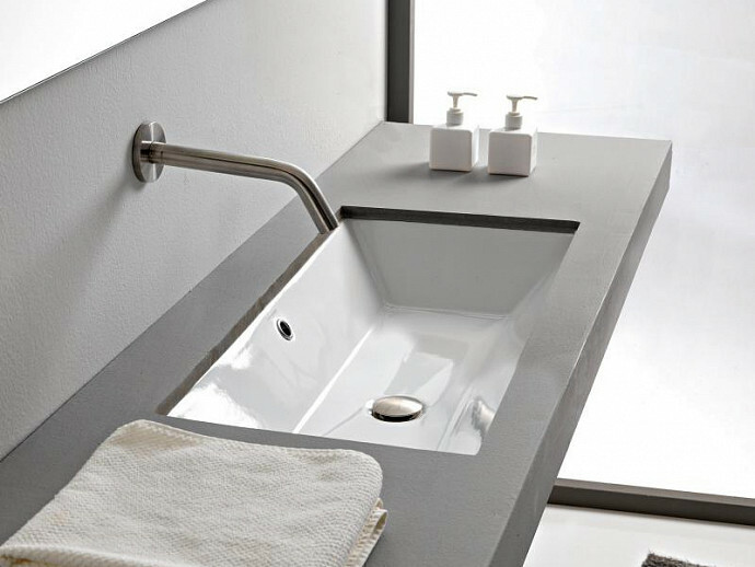 Раковина, Scarabeo, Teorema 2.0, ширина, мм-600, глубина, мм-360, высота, мм-170, тип установки-встраиваемый снизу, отверстия для смесителя-отсутствуют, с переливом, материал-керамика, цвет-белый Раковина, Scarabeo, Teorema 2.0, шгв 600*360*170, отверстия для смесителя-отсутствуют, цвет-белый