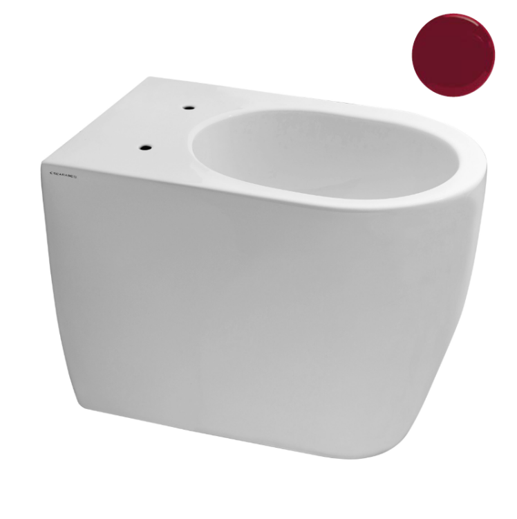 Унитаз, Scarabeo, Glam, безободковый (с открытым смывным краем), тип установки-напольный, ширина, мм-360, глубина, мм-550, высота, мм-420, форма чаши-овальная, выпуск-универсальный, материал-керамика, бачок-необходима система инсталляции, скрытый бачок, сиденье-необходимо заказать, цвет-Cherry Унитаз, Scarabeo, Glam, напольный, шгв 360*550*420, цвет-Cherry