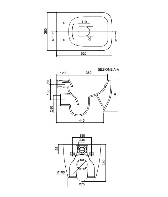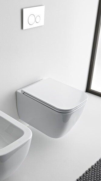 Унитаз, Scarabeo, Teorema 2.0, безободковый (с открытым смывным краем), тип установки-подвесной, ширина, мм-360, глубина, мм-520, высота, мм-350, форма чаши-прямоугольная, выпуск-горизонтальный, материал-керамика, сиденье-необходимо заказать, без креплений, цвет-белый Унитаз, Scarabeo, Teorema 2.0, подвесной, шгв 360*520*350, цвет-белый