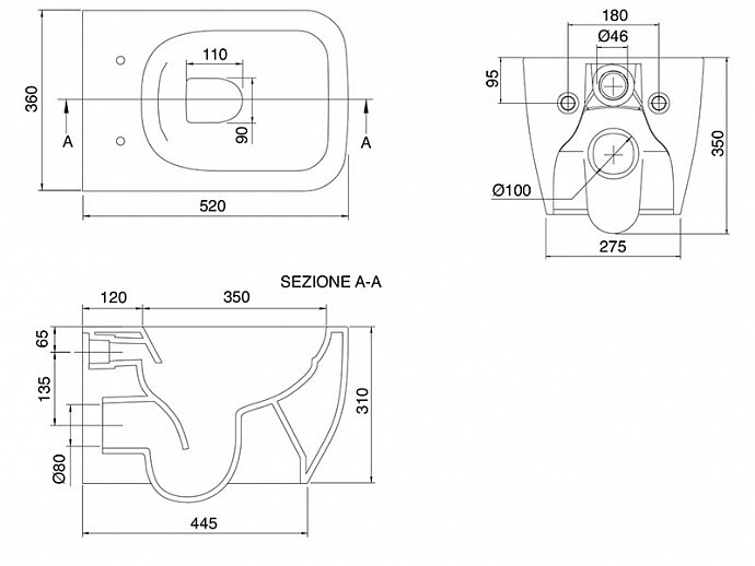 | Бачок | необходима система инсталляции, скрытый бачок |