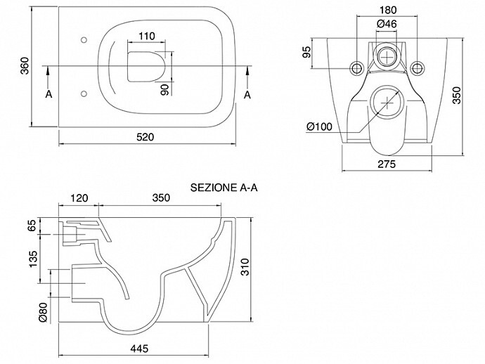 | Бачок | необходима система инсталляции, скрытый бачок |