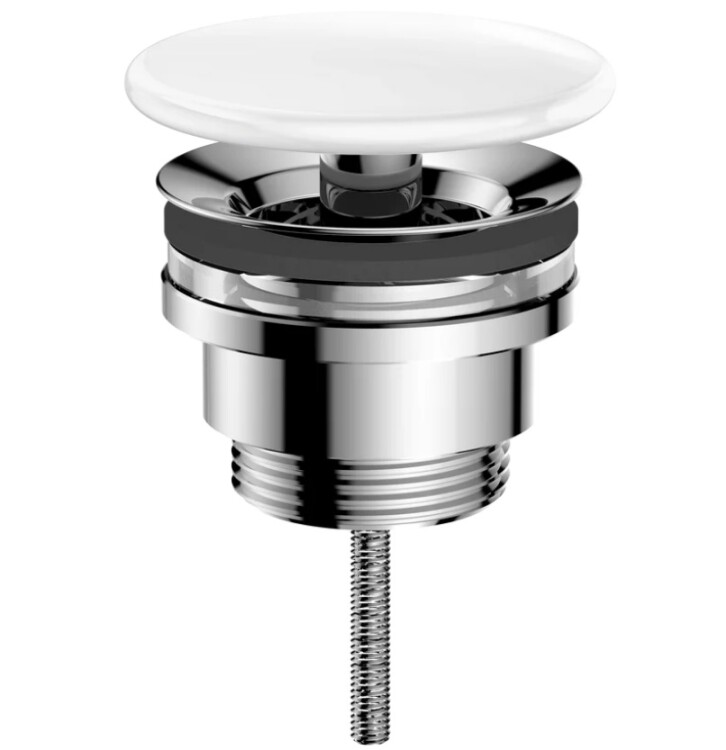 Донный клапан, Smartflow, для раковин, 1 1/4", форма крышки-круглая, диаметр крышки, мм-72, материал-металл, цвет клапана-хром, цвет крышки-белый Донный клапан, Smartflow, для раковин, 1 1/4", цвет-хром/белый