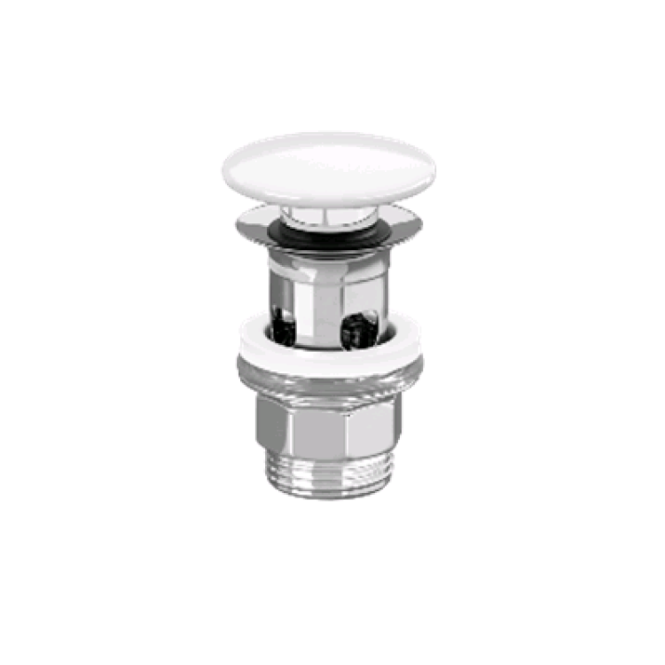 Донный клапан, Smartflow, для раковин, 1 1/4", форма крышки-круглая, диаметр крышки, мм-72, материал-металл, материал крышки-керамика, цвет клапана-хром, цвет крышки-хром/белый Донный клапан, Smartflow, для раковин, 1 1/4", цвет-хром/белый